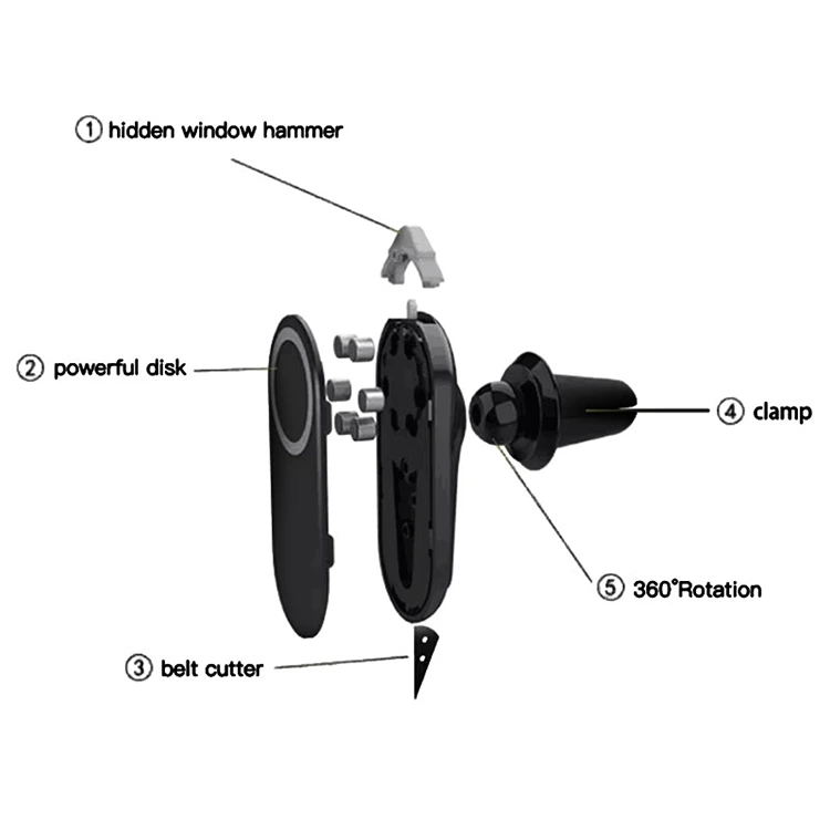 3-इन-1 डिझाइन या ऍक्सेसरीला साध्या धारकाकडून काही सेकंदात आपत्कालीन साधनामध्ये रूपांतरित करते. हिडन विंडो हॅमर समजूतदार तरीही प्रभावी आहे आणि तीक्ष्ण, गंजरोधक बेल्ट कटर आपत्कालीन परिस्थितीत सीटबेल्ट त्वरित कापण्यासाठी अचूक मिश्रधातूचा वापर करतो.