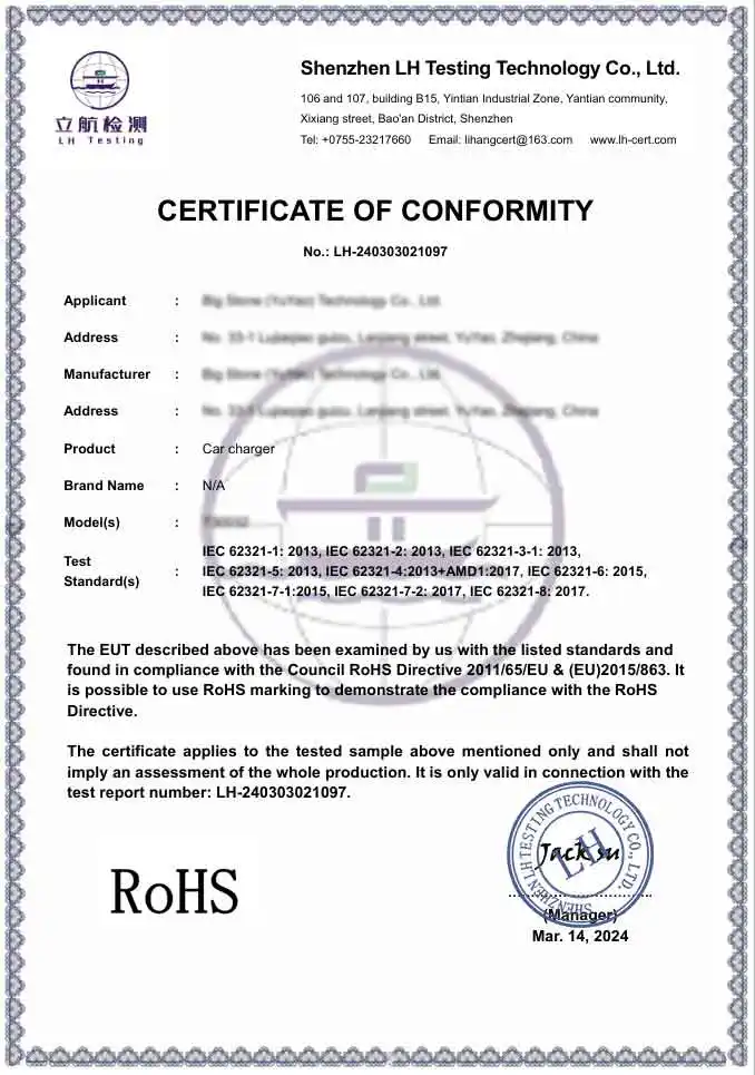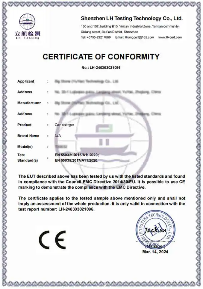 उ: एक व्यावसायिक कारखाना म्हणून, आमची उत्पादने आंतरराष्ट्रीय सुरक्षा आणि पर्यावरणीय मानकांचे पूर्णपणे पालन करतात. आम्ही CE आणि RoHS प्रमाणित उत्पादने प्रदान करतो. शिवाय, आमची उत्पादन सुविधा BSCI आणि ISO प्रमाणित आहे, हे सुनिश्चित करते की आमचे कार चार्जर अडॅप्टर प्रीमियम जागतिक ब्रँड्ससाठी आवश्यक असलेल्या कठोर तांत्रिक आणि नैतिक मानकांची पूर्तता करतात.