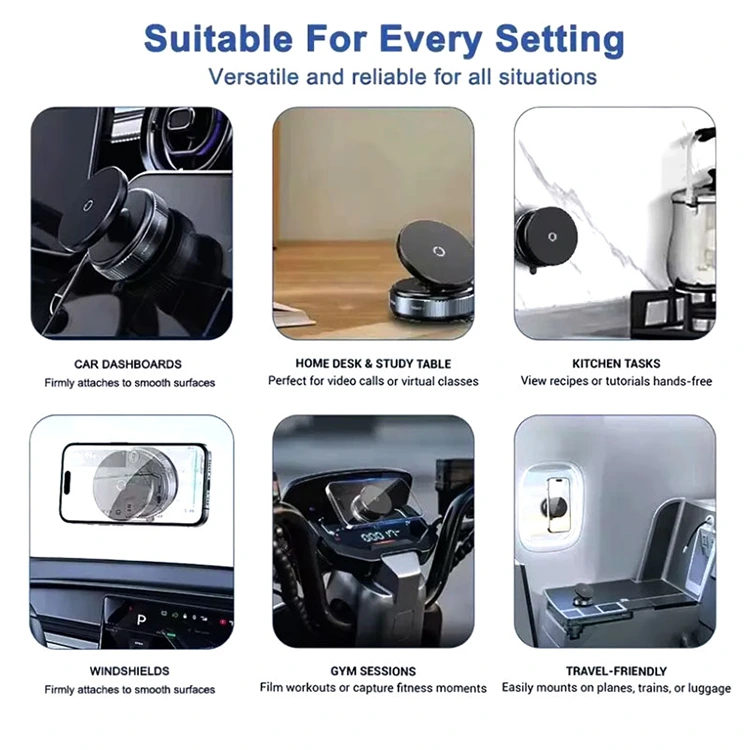 चुंबकीय व्हॅक्यूम: कार फोन माउंट तुमच्या वाहनाच्या काचेला, डॅशबोर्डला किंवा गुळगुळीत पृष्ठभागावर घट्ट पकड मिळवण्यासाठी झटपट ट्विस्टसह जोडते—कोणत्याही साधनांची आवश्यकता नाही. सिलिकॉन, लेदर किंवा असमान फोन केसेसमध्ये अंगठी जोडू नका. खडबडीत रस्त्यावर आणि तीक्ष्ण वळणे काळजी न करता, तुमचा फोन सुरक्षितपणे बांधून, तुमचे डोळे पूर्णपणे पुढच्या रस्त्यावर लक्ष केंद्रित करण्यासाठी मोकळे ठेवून चालवा.