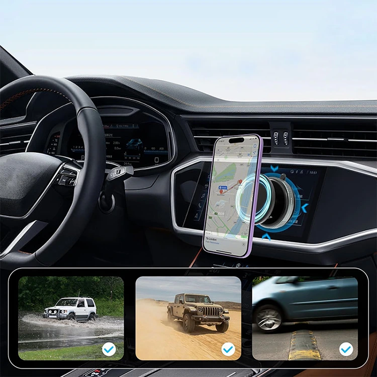 विस्तीर्ण उपकरण सुसंगतता: आमचे कार फोन माउंट नवीनतम iPhone मॉडेल (16/15/14/13/12) आणि सर्व MagSafe-सुसंगत उपकरणांशी सुसंगत आहे. नॉन-मॅगसेफ उपकरणांसाठी, अतिरिक्त पकडीसाठी उच्च-शक्तीची चुंबकीय रिंग समाविष्ट केली आहे. फोन केससह किंवा त्याशिवाय, तुमचा फोन एका हाताने त्वरित जोडला जातो. बहुतेक कार मॉडेल्सशी सुसंगत, हे सानुकूलित कार फोन माउंट आधुनिक ड्रायव्हर्ससाठी सुरक्षित आणि सहज स्थापना देते.