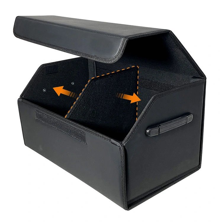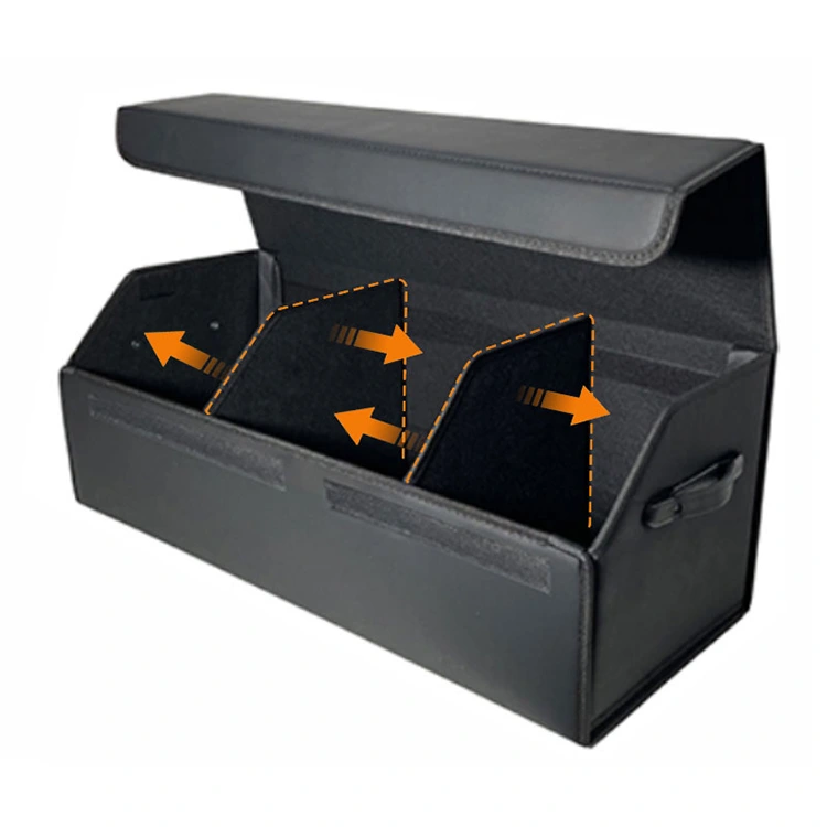 संकुचित करण्यायोग्य: वापरात नसताना जागा-बचत डिझाइन कोसळते. जेव्हा बॉक्समध्ये कोणतीही वस्तू नसते किंवा तुम्हाला ट्रंकमध्ये मोठ्या वस्तू ठेवण्याची आवश्यकता असते, तेव्हा जागा वाचवण्यासाठी तुम्ही बॉक्स फोल्ड करू शकता. सानुकूल करण्यायोग्य अंतर्गत कंपार्टमेंट विविध स्टोरेज गरजा पूर्ण करतात. सुसज्ज हँडल ते जंगम बनवते आणि ते कॅम्पिंग किंवा खरेदी दरम्यान आयटम हलवू शकते.