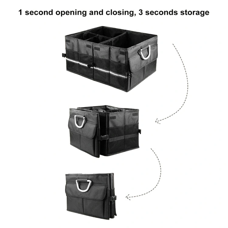 **विस्तार करण्यायोग्य मोठी क्षमता** हा संयोजक ट्रंकच्या परिमाणांना सामावून घेण्यासाठी विस्तार करू शकतो, ज्यामुळे अतिरिक्त आवश्यक सामान वाहून नेण्यासाठी कोलॅपसिबल कार ऑर्गनायझरची क्षमता समायोजित करता येते.