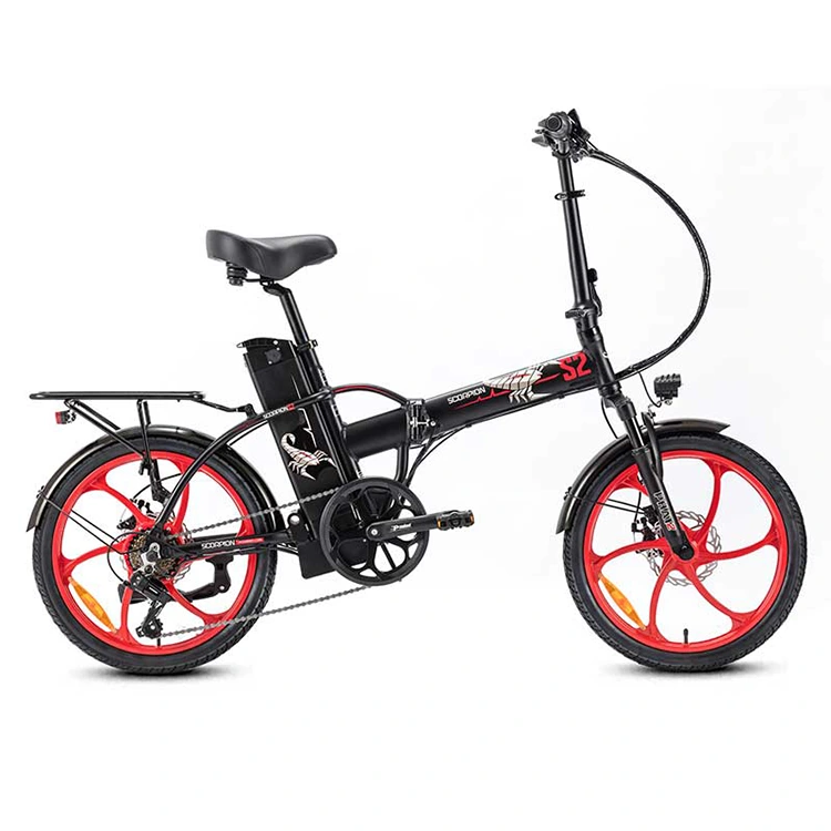 मोहक आणि शक्तिशाली व्हील डिझाइन: फोल्डिंग इलेक्ट्रिक बाइकमध्ये ठळक प्रोफाइल असलेले लाल, पाच-स्पोक ॲलॉय व्हील आहेत. ही चाके स्टाईल आणि पॉवर या दोन्हीसाठी आहेत, ज्यामध्ये सहज आणि सुरक्षित ब्रेकिंग कामगिरीसाठी विश्वसनीय डिस्क ब्रेक सिस्टम आहे.