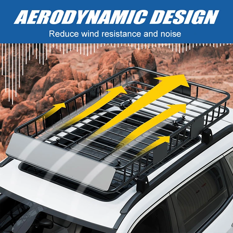 फॅन्सी रूफ रॅक कॅरियर बास्केटचे वायुगतिकीय डिझाइन ड्रायव्हिंग दरम्यान वारा ड्रॅग आणि आवाज कमी करते. डिझाइनमुळे रॅकवर हवा मुक्तपणे वाहू शकते, ड्रॅग आणि इंधनाचा वापर कमी होतो. हे महामार्ग-स्वारासाठी अनुकूल आहे; ते अधिक वेगातही शांत, नितळ राइड देते.