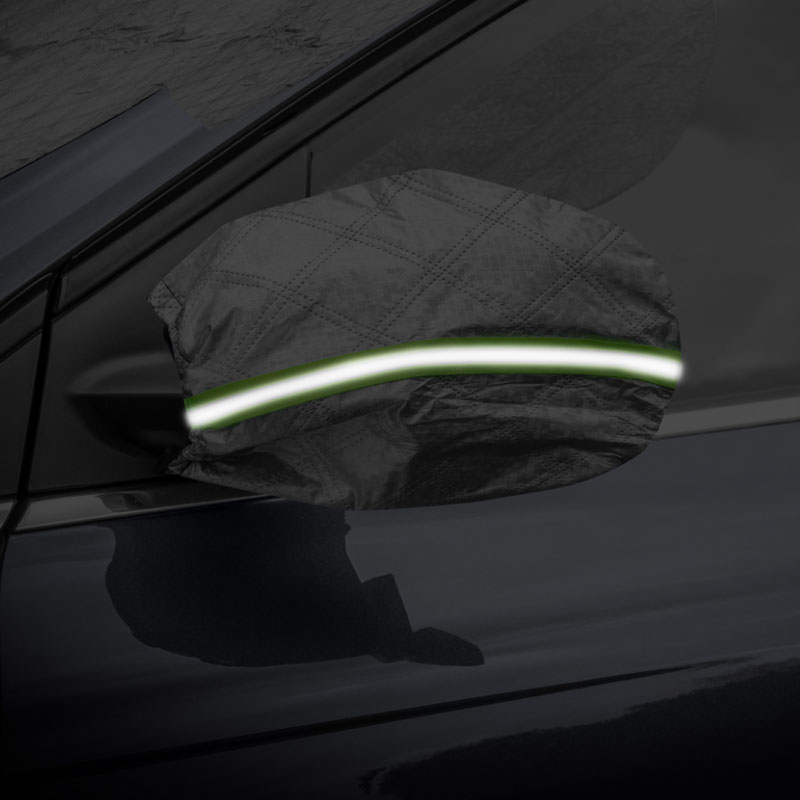 स्नोप्रूफ कार कव्हरसाठी सुरक्षा वैशिष्ट्ये: मिरर पॉकेट्समध्ये परावर्तित पट्ट्या असतात ज्यामुळे तुमची कार अंधारात किंवा बर्फाळ हवामानात पाहणे सोपे होते, पार्किंगमधील जोखीम कमी करतात.